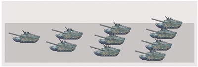 今年參加閱兵的坦克部隊(duì)來(lái)自北京軍區(qū)第38集團(tuán)軍。在所有參閱的裝備方隊(duì)里,它們將第一個(gè)駛過(guò)天安門(mén)廣場(chǎng)。和其他方隊(duì)使用的矩形編隊(duì)不同,坦克方隊(duì)以箭形編隊(duì)前行。這次參閱的坦克為99A式坦克,是99式坦克的改進(jìn)型,性能與99式坦克相比有本質(zhì)性的提升。坦克方隊(duì)受閱長(zhǎng)徑達(dá)112.6米,每行駛100米,駕駛員需要調(diào)整方向48次才能保證騎線,展現(xiàn)的可謂是“指尖上的舞蹈”。